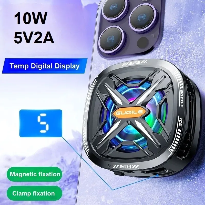 FS05 Semiconductor Mobile Phone Radiator Cooler Fan 10w Digital Display Magnetic Back Clamp