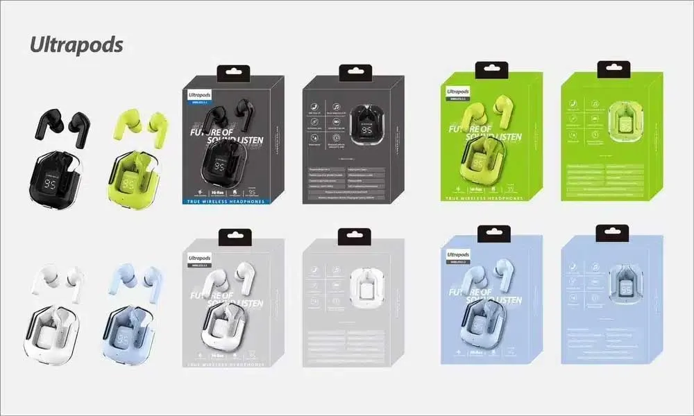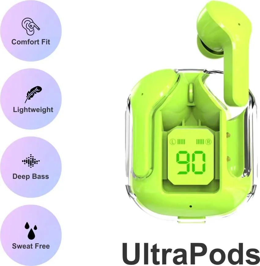 Ultrapods Wireless Earbuds with Display Transparent Design, Bluetooth 5.3 Water Proof, BEST TWS